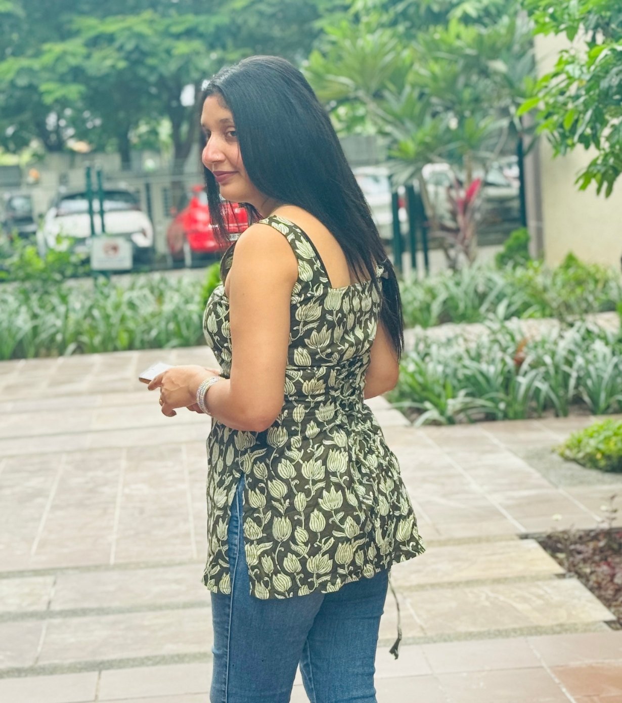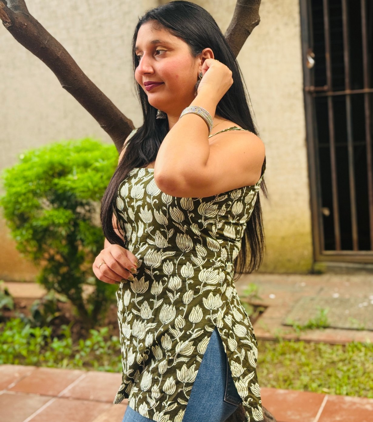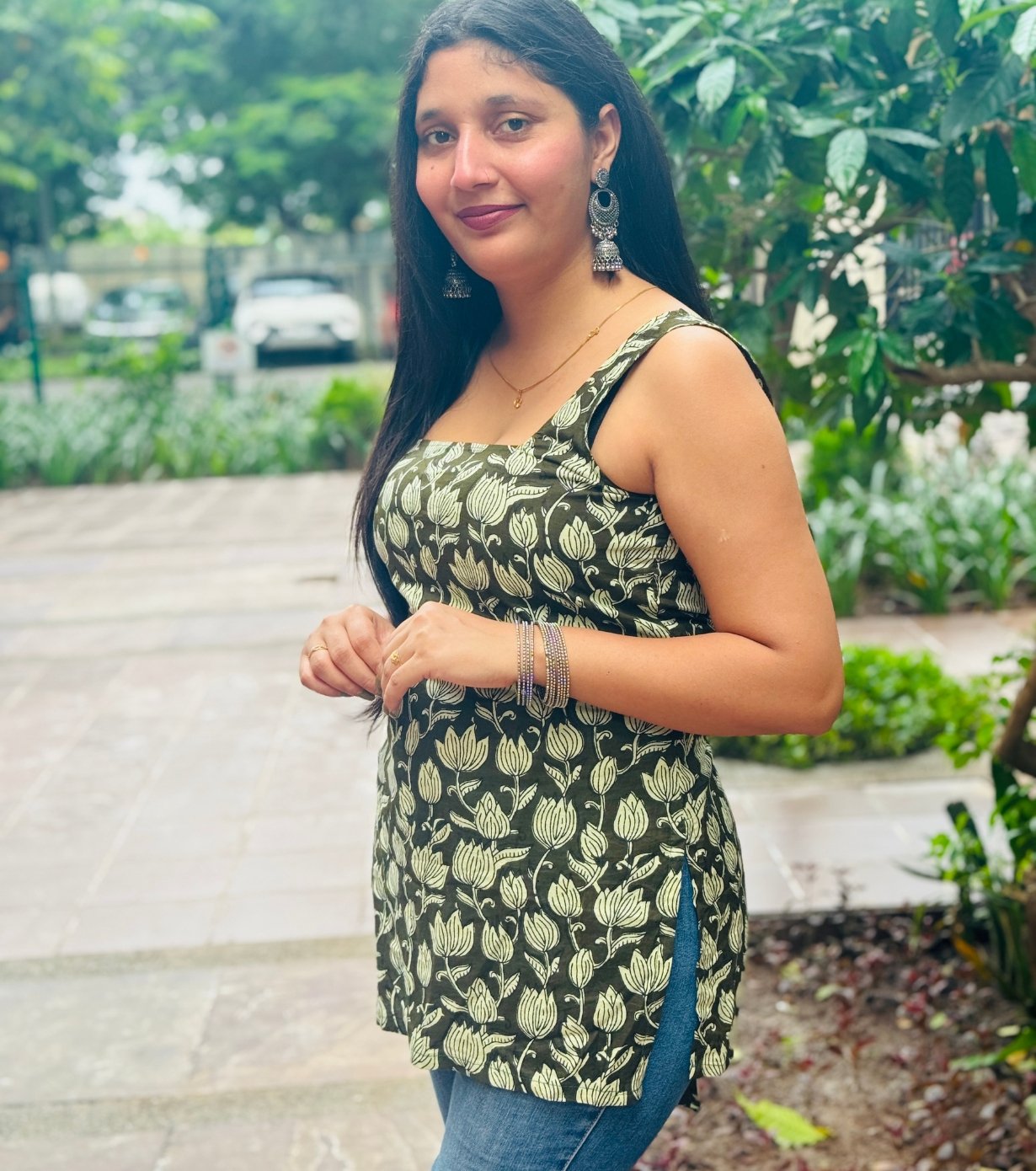 Monsoon Bloom: Gray Short Ku rti Step into the season with elegance in this gray short kurti, adorned with delicate blue floral prints. Crafted from soft, breathable cotton, it keeps you cool and comfortable even on humid days. Perfect for monsoon moods — light, airy, and effortlessly stylish.